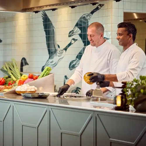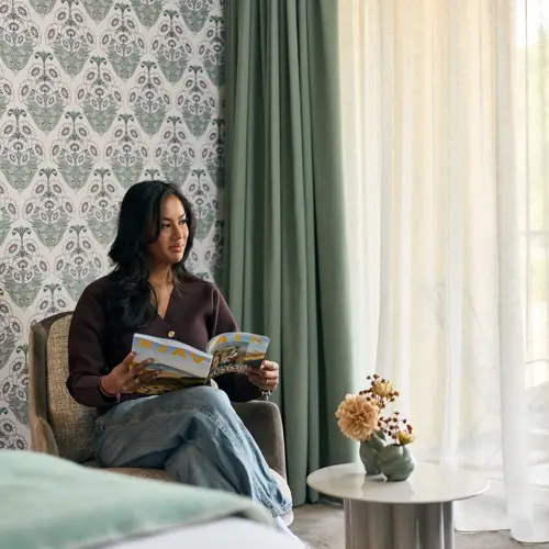 Dit verhaal van de natuur en de regio heeft kunstenaar Sebastiaan tot leven gebracht! Zijn unieke tekeningen zijn te vinden door het hotel heen. Zo creëerde de voormalig tattoo-artist prachtige tegels met designs van water, schelpen, zeemeerminnen, boten, vogels en de Dijk van Volendam. Maar ook heeft hij het behang van de hotelkamers, de logo's en nog veel meer ontworpen. Op Instagram ontdek je meer van deze talentvolle creatieveling.